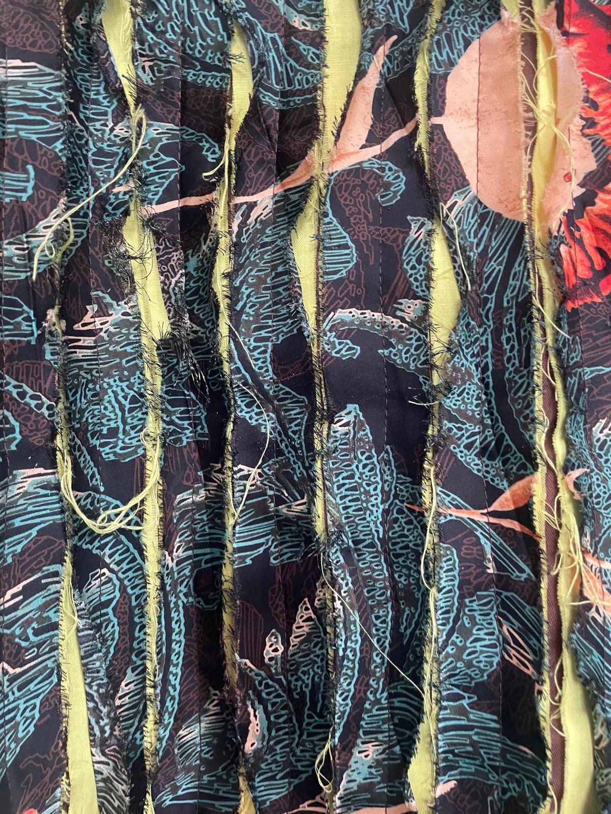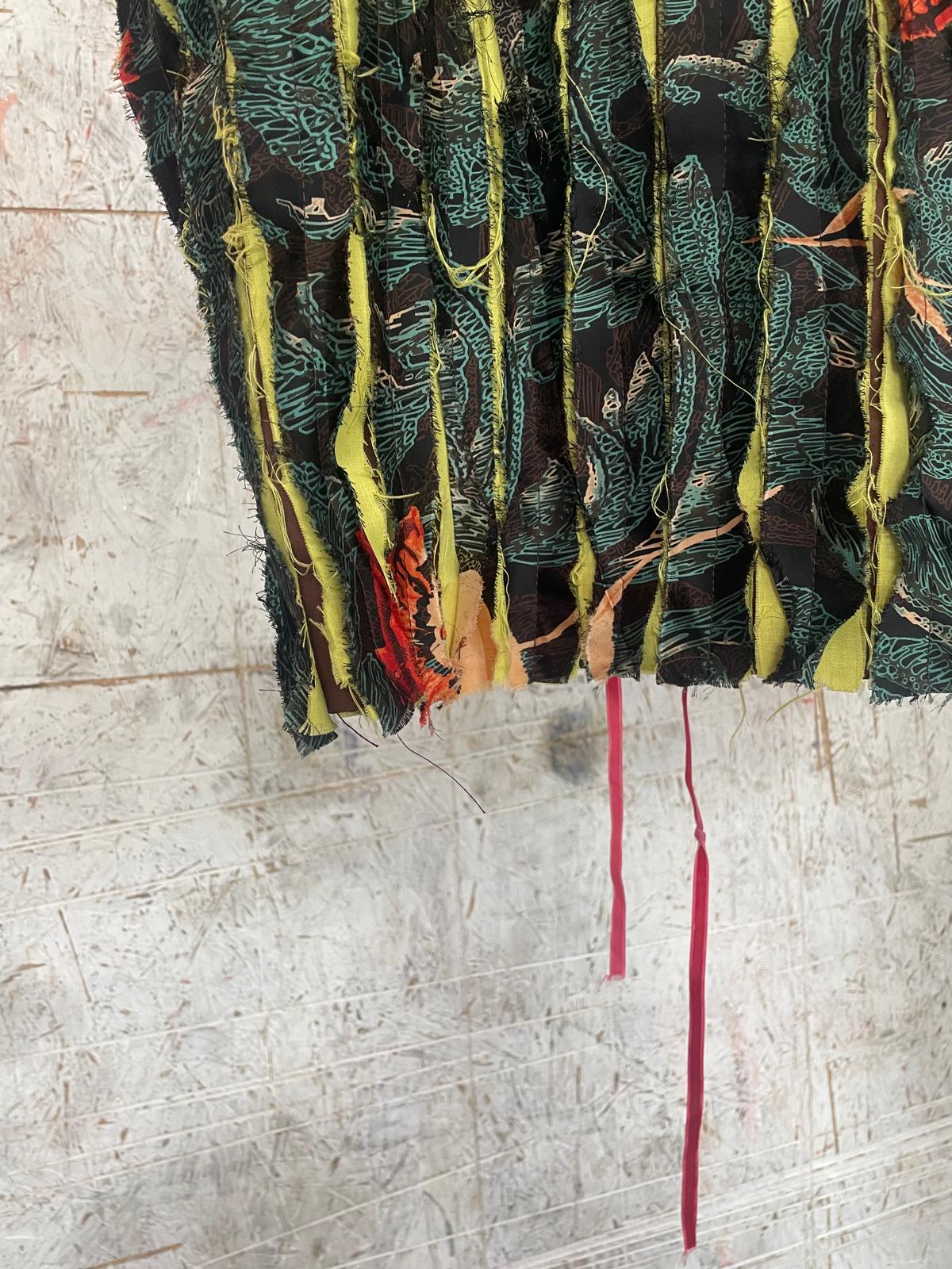 Handmade in LANES new technique, layered fabric with a pleat affect.